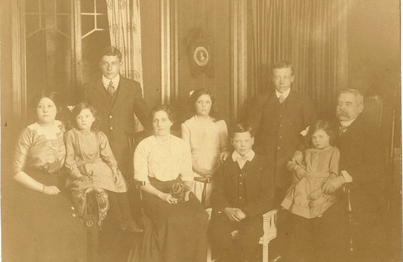 This is the photograph that started our family history quest; it shows the Southcombe family circa 1909, probably posed in a photographers studio in Cardiff when the family were living in Constellation Street, Roath. Left to right are; Annie Angelina, Phyllis Jessie, Clifford Samuel, Emma Rachel Southcombe, nee Candy, [Clive's grandmother}, Hilda Irene, Cecil Horace, Arthur James, Ivy Irene (Clive's mother, sitting on fathers knee), and Samuel Southcombe who was born in 1856 in Lydiard St Lawrence, Somerset. Samuel was 13 years older than Emma; they married on 1st December 1889 in Cardiff, and had nine children, but two died young. Samuel was a Boilermaker and the family set up home in Portskewett, Monmouthshire, where Samuel was involved with the Great Western Railway at the pumping station above the entrance to the Severn Tunnel under the Bristol Channel. The Severn Tunnel was always plagued by water from a spring leaking into the working while the tunnel was being built and even today they are still pumping out water 24/7 to prevent the tunnel flooding. Originally the pumps were steam driven and six large 'Lancashire Boilers' raised the steam needed, but today the pumps are powered by electricity. In the 1891 Census they were at 6 Marine Terrace where their son Clifford and daughter Annie were born, before the 1901 Census they had moved to 6 Church Row where the next three children were born. This move was to a larger house, but still wihin five minutes walk of Samuel's work. The 1901 Census shows them in Cardiff at 58 Constellation Street. Their last four children were born in Cardiff, including Clive's mother Ivy Irene Southcombe |