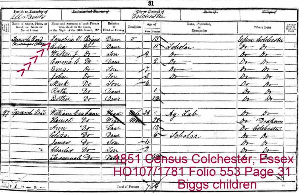 5 | "1851 Census Eyland Mary & family, Colchester, Essex". |